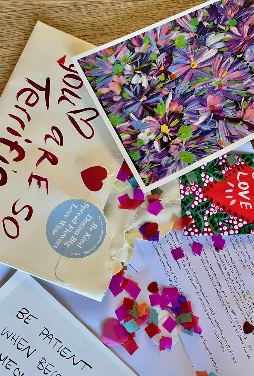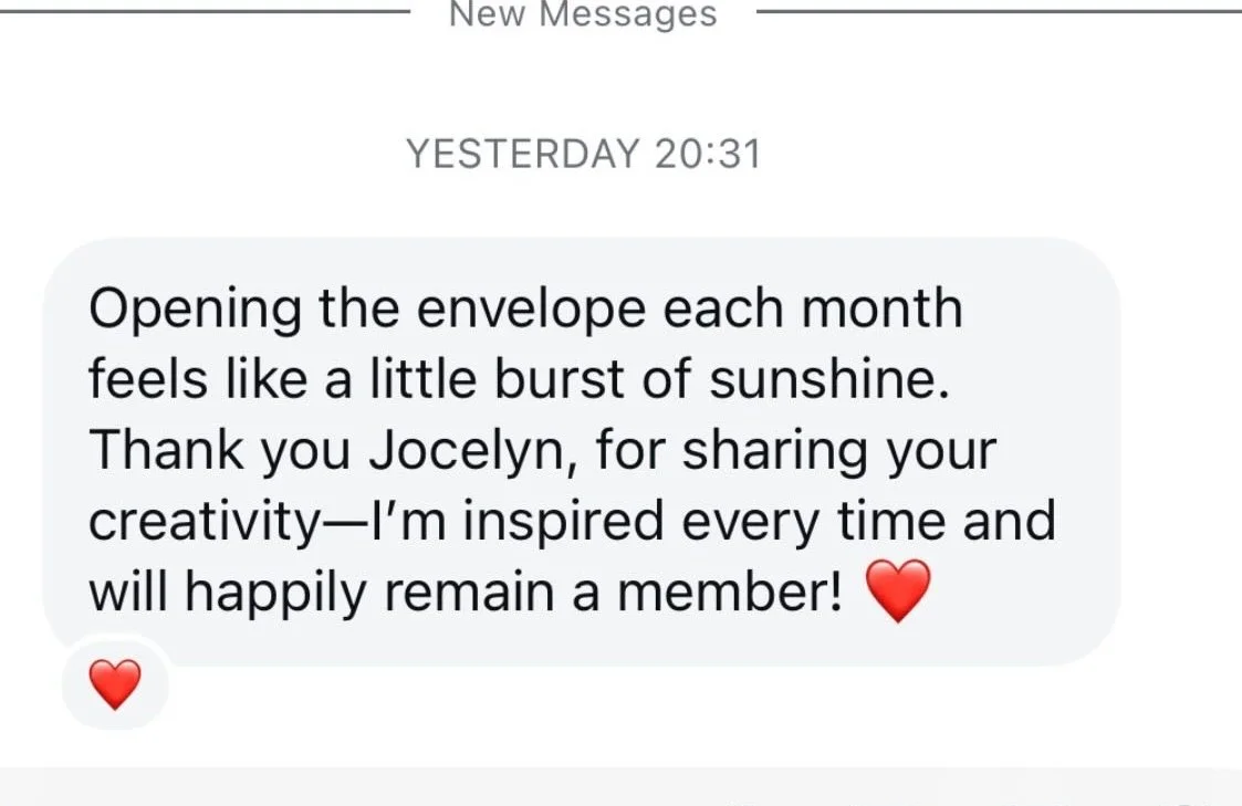 Why the difference in pricing? Every envelope includes high-quality materials, postage, and many hours of creative work to craft a meaningful experience for you. The monthly subscription gives you the best per-month value and is our way of inviting you to join the Living Canvas journey long-term.