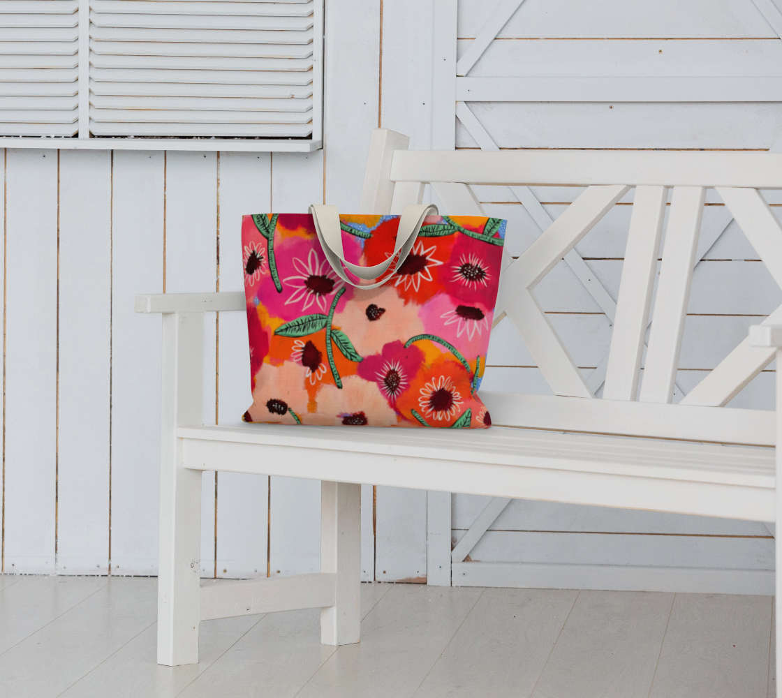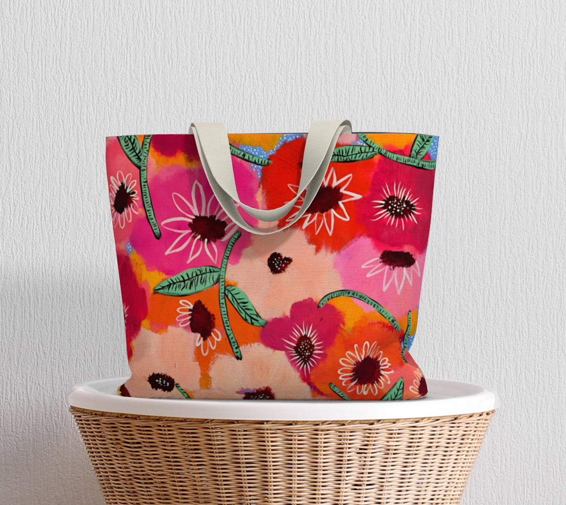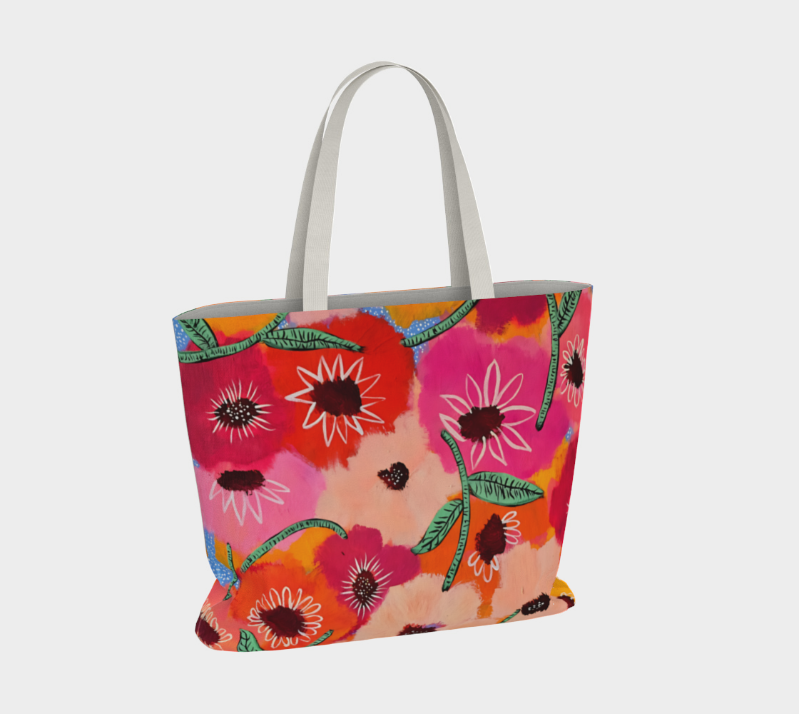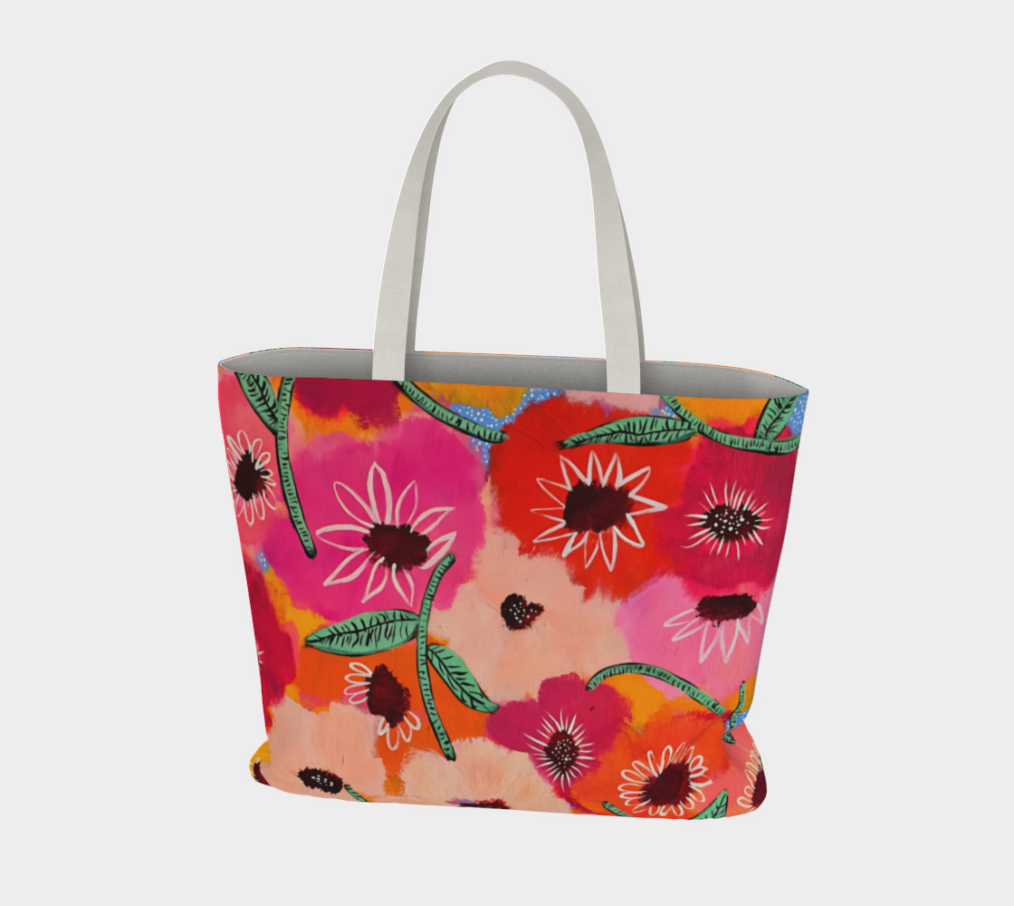 This oversized cotton canvas beauty blends functionality with serious style. Featuring our original, one-of-a-kind artwork, this tote isn’t just a bag — it’s a walking piece of joy. Whether you're hauling groceries, notebooks, or a fresh bouquet, it adds a burst of color (and creativity) wherever you go!