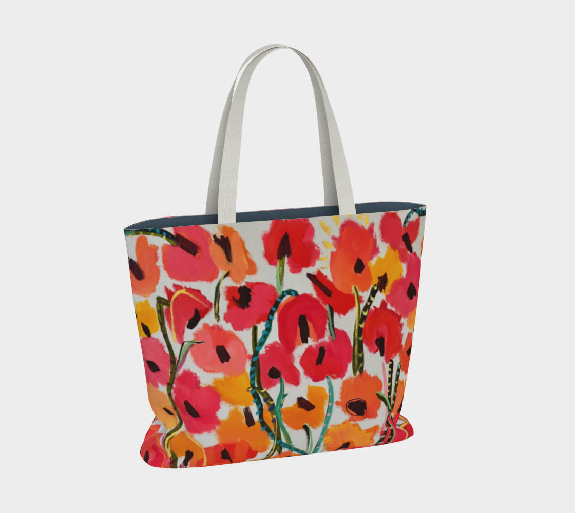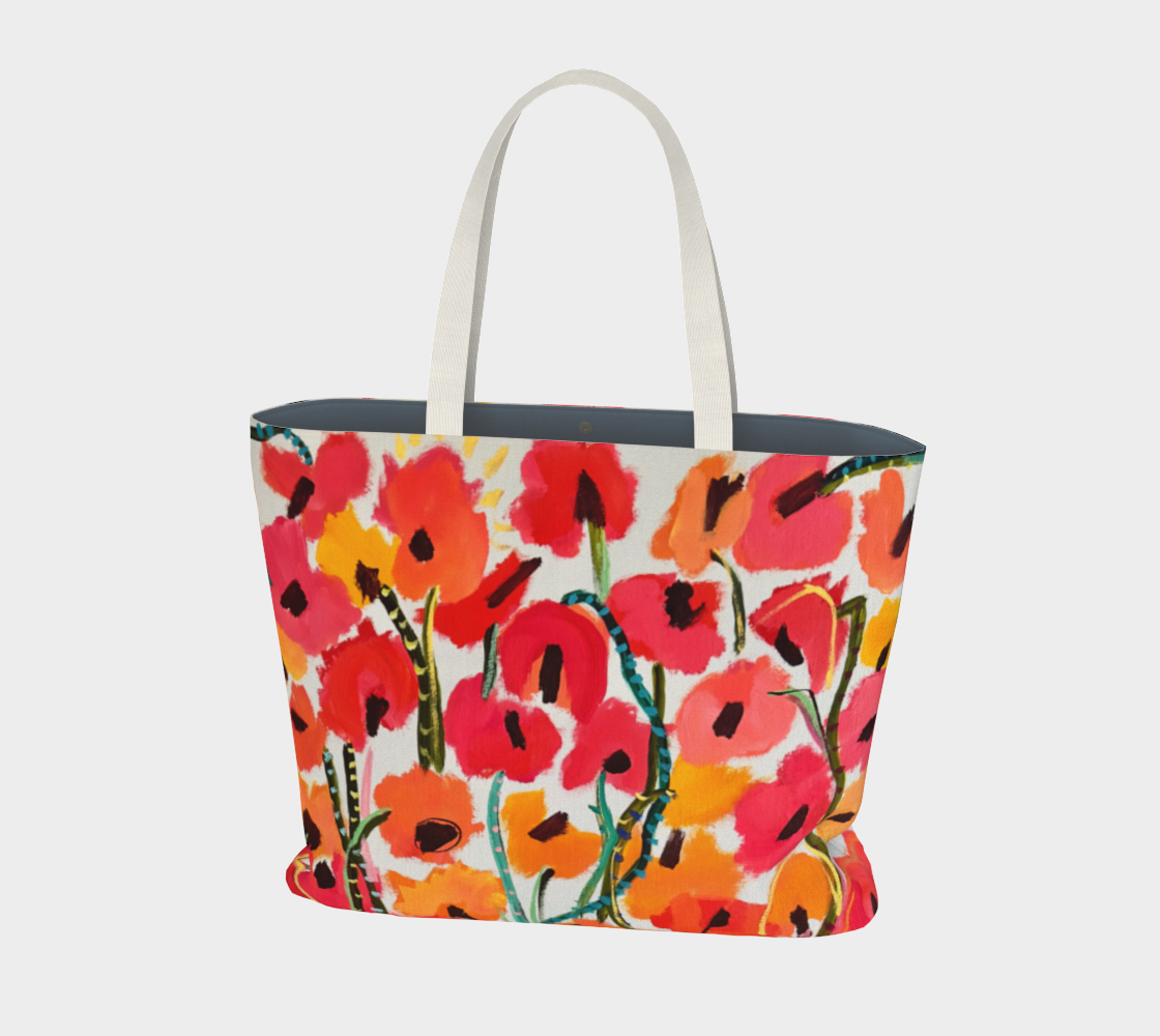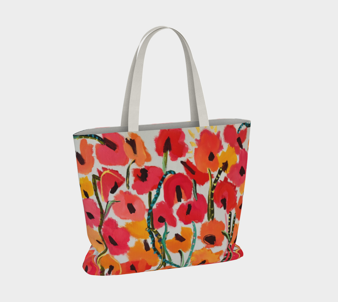 This oversized cotton canvas beauty blends functionality with serious style. Featuring our original, one-of-a-kind artwork, this tote isn’t just a bag — it’s a walking piece of joy. Whether you're hauling groceries, notebooks, or a fresh bouquet, it adds a burst of color (and creativity) wherever you go!