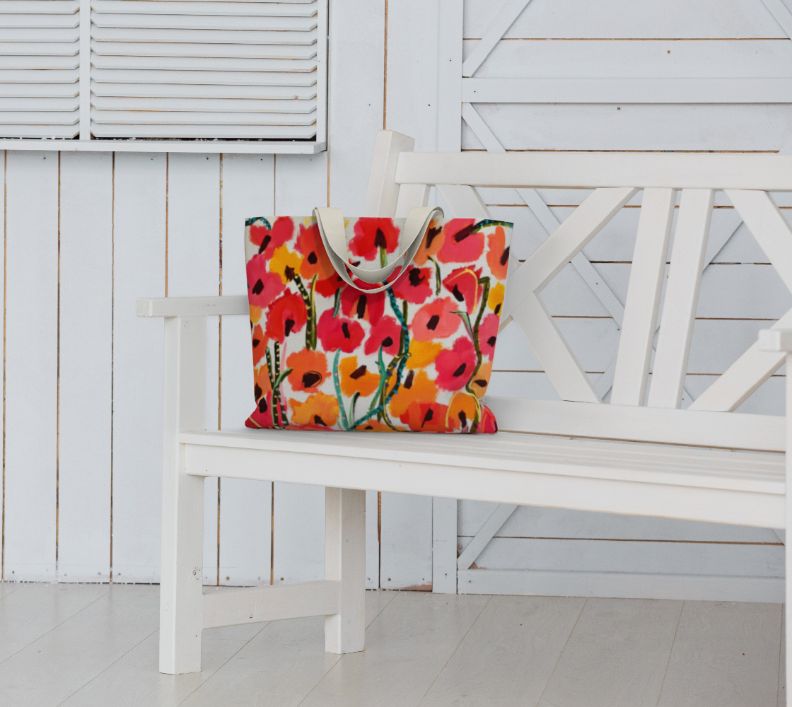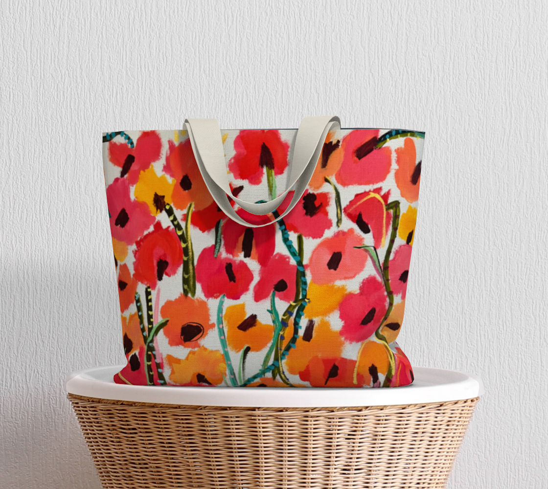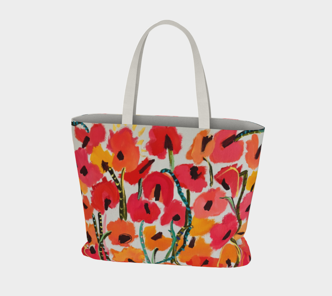 This oversized cotton canvas beauty blends functionality with serious style. Featuring our original, one-of-a-kind artwork, this tote isn’t just a bag — it’s a walking piece of joy. Whether you're hauling groceries, notebooks, or a fresh bouquet, it adds a burst of color (and creativity) wherever you go!
